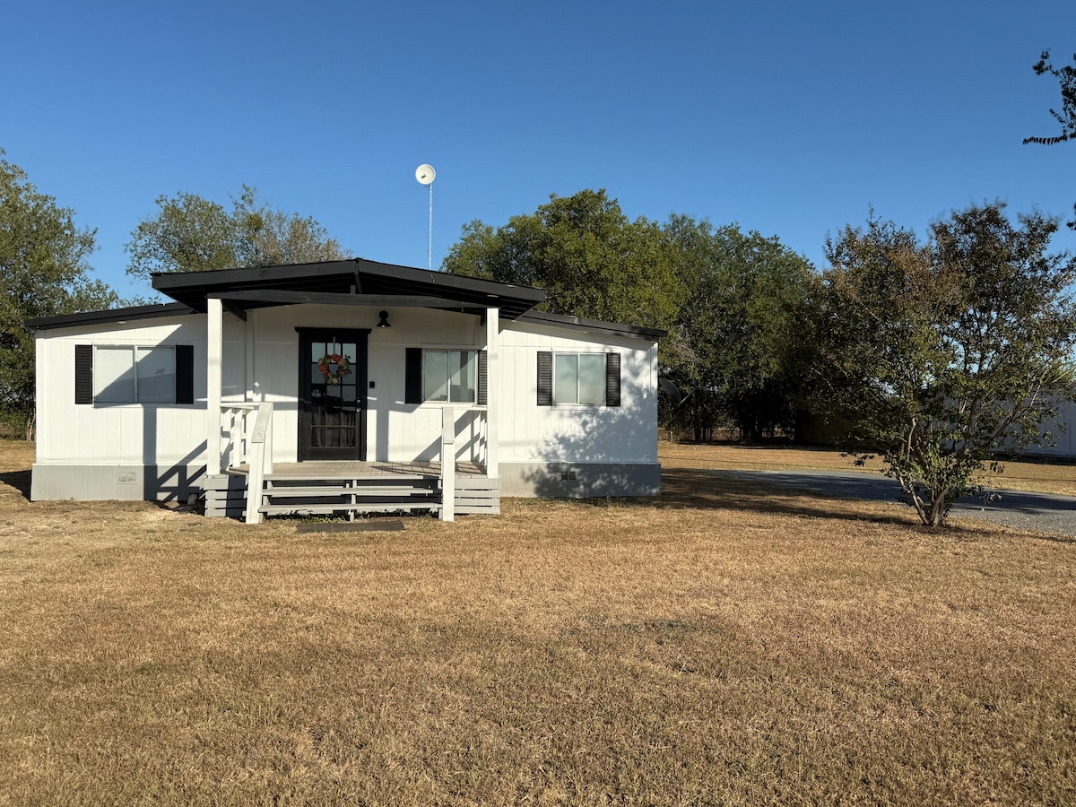 Cozy Texas Hill Country Hideaway Kick back where stars shine bright & the farm comes alive.🐓 Minutes from the famous Gruene Hall, Whitewater Amphitheater, Stars & Stripes Drive-In & 50’s Café.🍿 Adults-only, made for relaxing, exploring & soaking in the charm of peaceful farm views — relax & recharge.😌 Sleeps 4 (queen + cozy sleeper sofa). Pull-out suits 1 adult or 2 petite guests — perfect for friends’ getaways or close couples. Linens provided; extra guests $10/night. Rate covers 2 guests.🐓