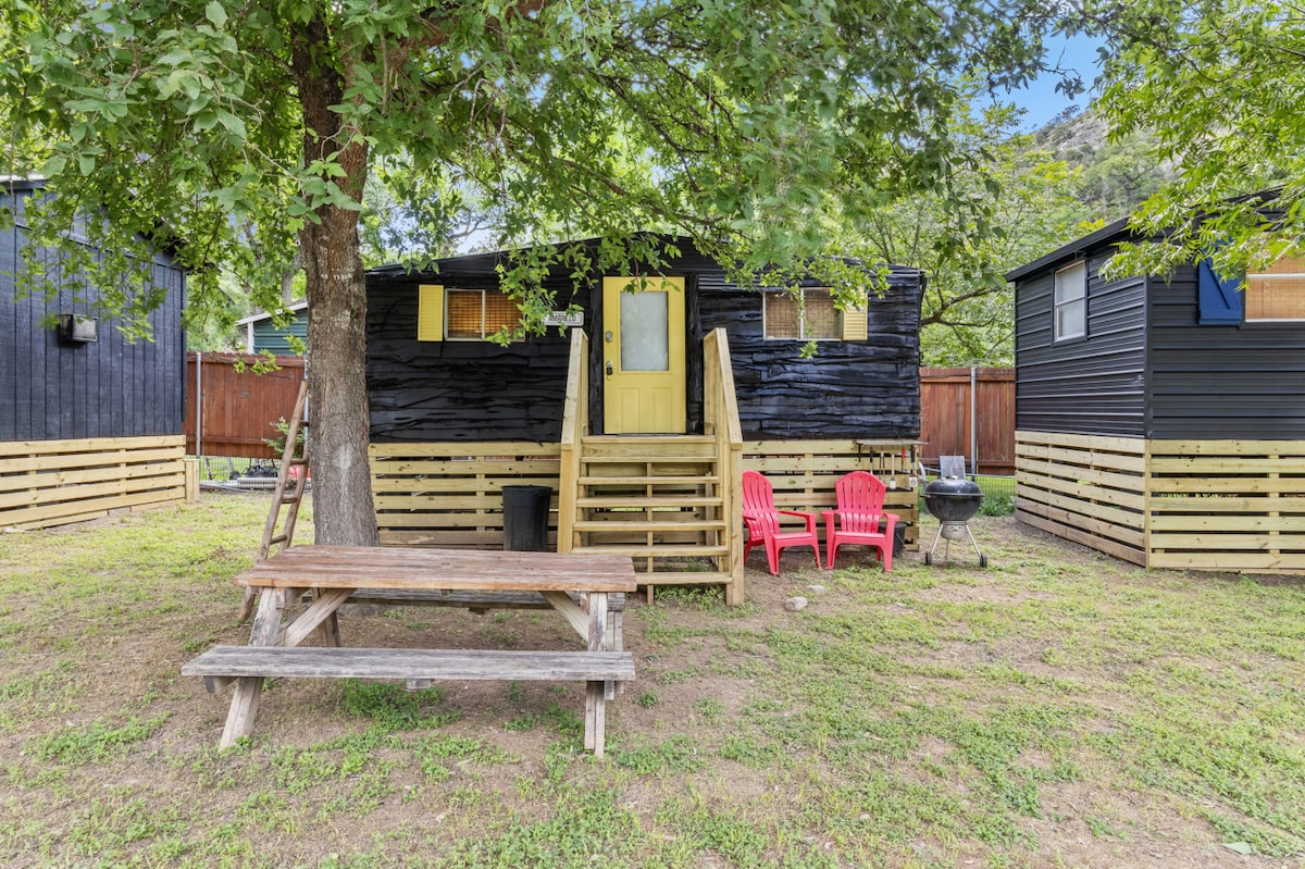 Enjoy this hidden gem in New Braunfels. This 392 sq ft 1 bedroom, 1 bathroom house has it's own full kitchen with washer/dryer. The bedroom has a queen bed and there is a pull out couch in the living room (pull out mattress was replaced in July 2024). The house is fenced off so you have your own private oasis! You'll be able to BBQ on those nice Texas nights too!