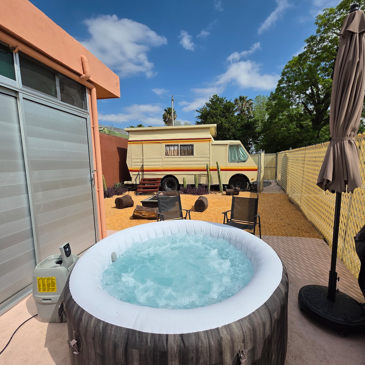 Relájate en esta escapada única y tranquila. Suite independiente con cocineta, baño, televisión y un área de jacuzzi con asador solo para ti. Ubicado a media cuadra de Gran parque, con una linda vista de tu balcón para ver los amaneceres y atardeceres únicos de Monterrey, a pocos minutos de avenidas a centros comerciales y negocios.