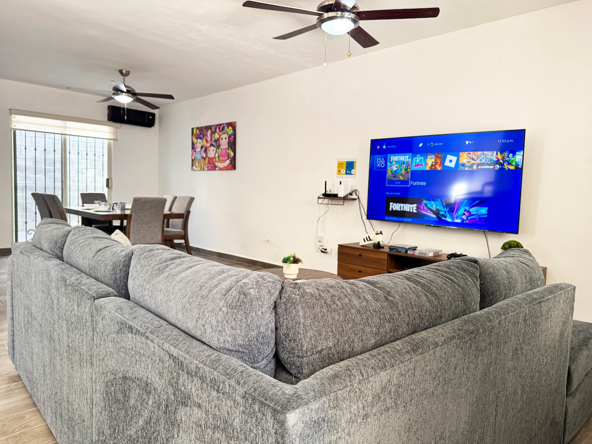 Enjoy a stylish and comfortable stay in this spacious apartment, fully equipped with everything you need. Perfectly located just minutes from top attractions: • 5 min to Fundidora Park • 10 min to BBVA Stadium • 8 min to Arena Monterrey • 10 min to GNP Forum Amenities you’ll love: • Washer/Dryer • 2 Smart TVs • High-Speed WiFi (150 Mbps) Surrounded by plenty of restaurants and shops, plus nearby supermarkets (5 min to Soriana, 8 min to HEB). Private parking for 2 cars included.