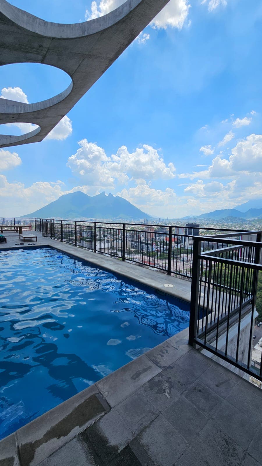 FACTURAMOS - Agua 24/7 - 3 personas ¡Bienvenido a Puntacero! Esperamos recibirte en uno de nuestros Airbnb más lujosos de Monterrey. Departamento con acabado excepcional y vista al cerro de la silla. ¡Ubicación única! Wifi, Smart TV, climatizado, 1 cajón de estacionamiento. Ideal para ejecutivos, familias y turistas. Seguridad 24/7, 3 elevadores, EXCELENTES AMENIDADES. Plaza comercial con restaurantes y un OXXO cerca. Cama King y Sofá cama Matrimonial.