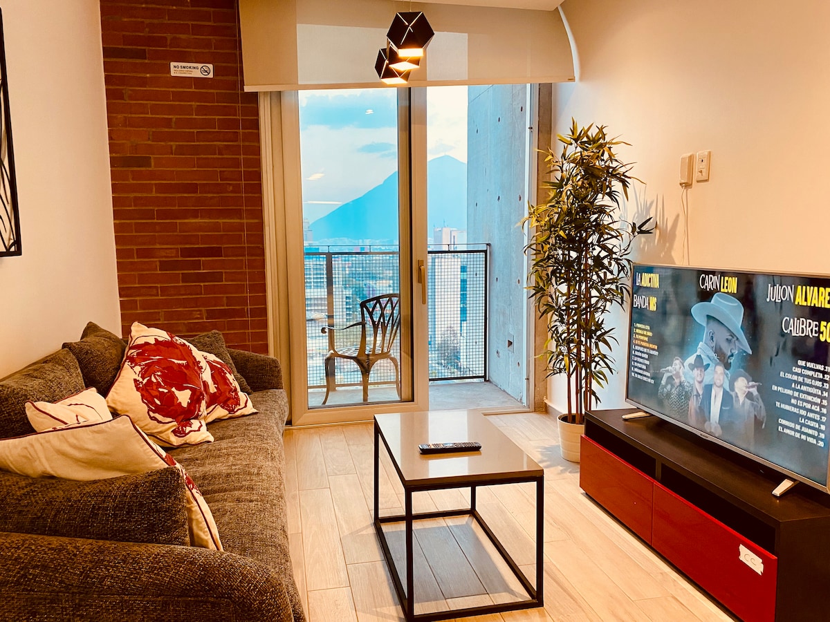 Enjoy a modern apartment in the heart of Monterrey. Located in a complex with a pool, terrace, gym, and lounge. Pet-friendly, with a fully equipped kitchen, TV area, high-speed WiFi, cable, and Netflix. From the living room and main bedroom, enjoy a beautiful view of the Sierra Madre. Perfect for short or long stays. You’ll love it!