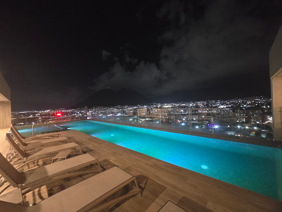 Despierta con un delicioso café y agua potable, nosotros lo invitamos!!! Ubicado en el centro de la ciudad, en el piso 11, con balcones y hermosas vistas al poniente de la ciudad, tiene acceso privado y mucha seguridad Estacionamiento sin costo para 1 auto A minutos de la macroplaza, barrio antiguo, acceso a un gran número de restaurantes, tiendas de conveniencia y museos que te harán una estancia confortable Espacio para trabajo remoto con internet de alta velocidad y climatizado