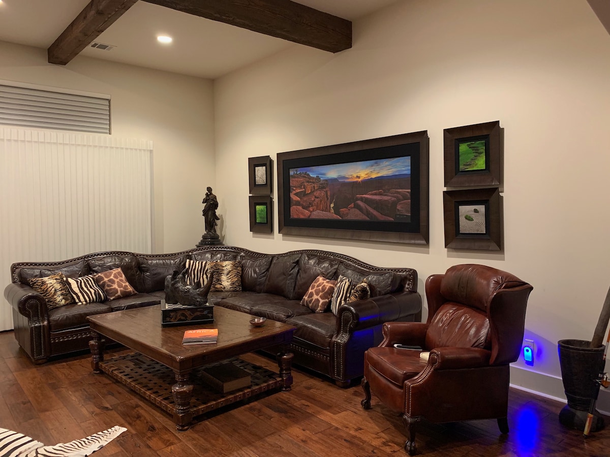 Step into the Scrabble Room — vintage vibes meet wordy whimsy! This room is a love letter to classic play. 144 sq ft gem features mission-style furniture. Wall-mounted Scrabble board for spontaneous word battles. Play wall-mounted Scrabble, sleep like royalty on a plush queen bed with organic sheets, and soak in Euro-style bathtub that whispers timeless elegance. We are proud to be Superhost & Top 5% Guest Favorite - Thank you!