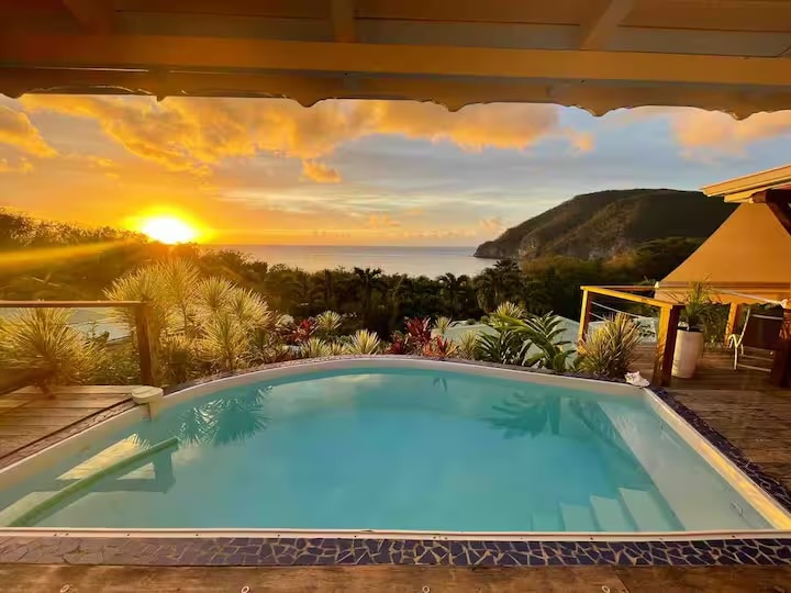 Villa Iwana - Classée 5 étoiles - Vue imprenable sur la Baie des Saintes avec piscine privée, Iwana vous offre une vue spectaculaire sur la célèbre baie. Détendez-vous dans cette villa luxueuse, entièrement climatisée, et profitez de sa magnifique piscine privée à débordement chauffée. Chaque pièce est pensée pour votre confort, avec une cuisine moderne, des chambres spacieuses et une atmosphère élégante. Parfaite pour des vacances en famille ou entre amis.