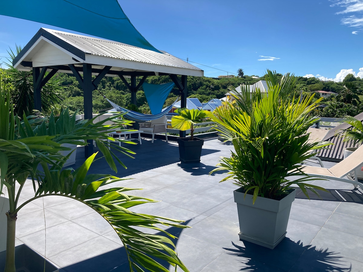 A quelques minutes de la gare maritime, de la marina et de la plage des raisins clairs, ce charmant bungalow sur fond de cocotier vous accueillera dans son espace cosy pour faire de votre séjour le plus doux des moments. La cuisine et l'espace restauration sont situés sur la terrasse, avec vue directe sur la piscine. Vous vous sentirez en totale autonomie, mais nous restons néanmoins tout proche, à l'étage de la villa, pour répondre à vos attentes et nous assurez de votre parfaite tranquilité.