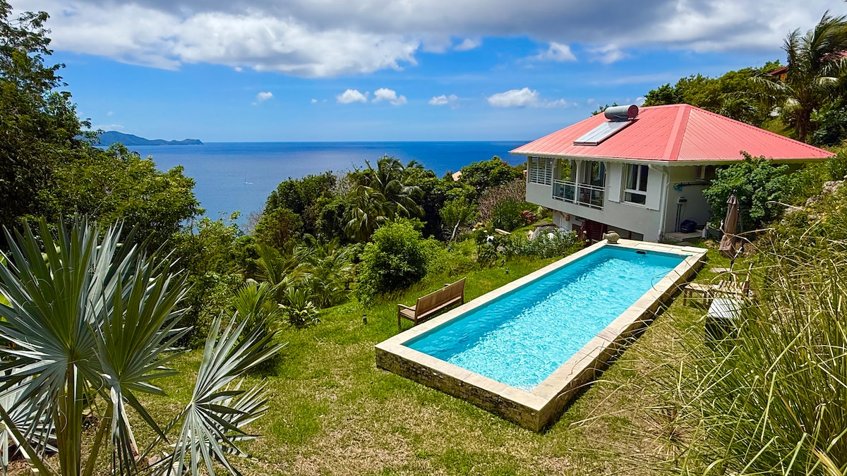 Nestled on a natural view point overlooking the Caribbean Sea, the 5-star Villa Blue Moon is one of the exceptional villas offered by *Blue Haven Villas Guadeloupe*. Sleeps 2. - Salt-water pool just steps from the super-king-size bed facing the sea with unopposed views. - Mosquito nets on windows and bed. -Fully equipped kitchen; Nespresso, dish & clothes washer, oven... - 180° view and sea access to one of the most beautiful snorkeling spots. - snorkelling gear - Parking, a-c, BBQ, Wi-Fi