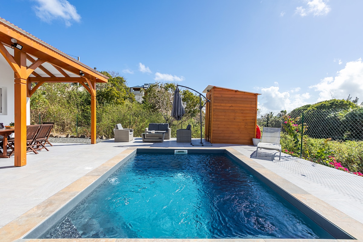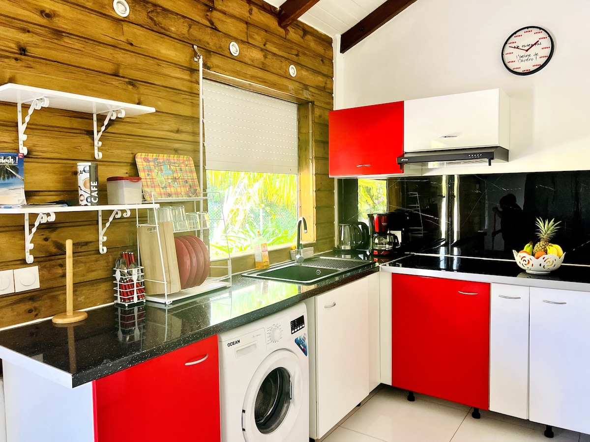 Studio cosy de 15m² en rez-de-jardin, niché entre mer et montagne dans un jardin tropical de 1400 m² avec bassin, piscine réservée exclusivement aux voyageurs du studio, salon extérieur et espace barbecue. Idéal pour se détendre après une journée de découverte. À 1h de l’aéroport, 20 min de l’embarcadère pour Les Saintes, 15 min de la Soufrière, à proximité des cascades, rivières, sentiers de randonnées et commodités. Un cadre parfait pour se ressourcer et profiter de la nature.