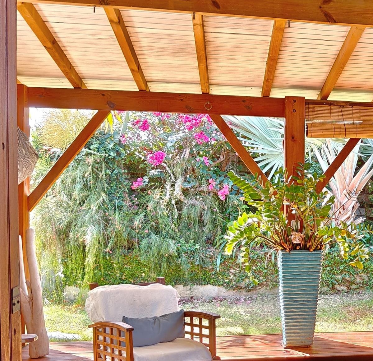 Notre bungalow est niché au cœur d'un jardin créole, face à l'archipel des Saintes. Il offre calme et fraîcheur à proximité des plages et des rivières du Sud Basse-Terre. l'accès à la piscine, à la maison principale et au parking se fait par le jardin (15 à 20m). Nous serons heureux de vous accueillir à votre arrivée autour d'un pot de bienvenue !