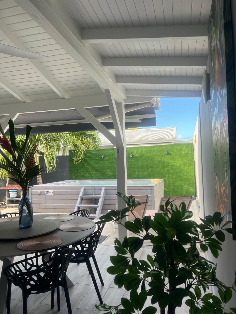 La maison se trouve dans un endroit calme et reposant. Le Spa pour une totale détente et relaxation pendant les vacances;. Le grand carbet est un lieu convivial pour manger ou boire un apéro échangé, et discuter. Une télévision connectée sous ce carbet pour profiter de you tube et netflix. La maison et ses deux chambres climatisées avec leurs téléviseurs le wifi et chacune a sa salle de bain.La cuisine est très bien équipée et spacieuse.