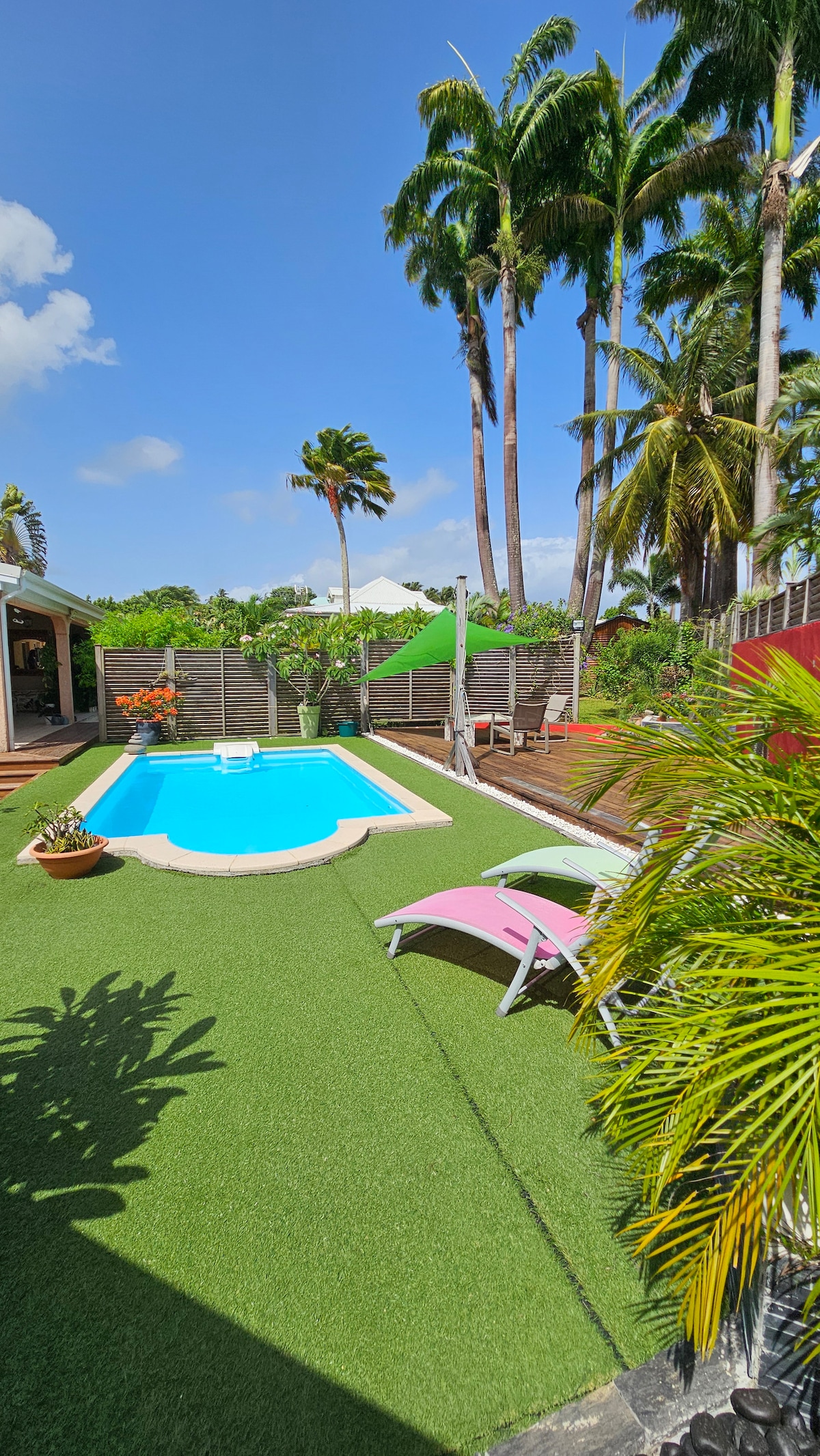 Située à Baie-Mahault, cette charmante maison pour deux personnes offre un cadre paisible et central pour découvrir la Guadeloupe. Elle dispose d’une terrasse aménagée, d’une superbe piscine, d’une suite climatisée avec télévision, d’un salon confortable et d’une cuisine entièrement équipée. Proche des commerces et du centre commercial Destreland, elle possède un emplacement stratégique qui permet un accès facile aux plages, rivières et randonnées. Entrée autonome possible par boîte à clés.