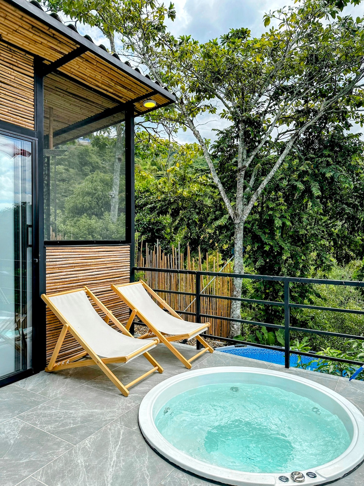 Welcome to Finca Boutique Los Laureles Villeta-Hotel ✨ Laureles The The Cabin - Discover The Cabin, an exclusive Luxury Tiny House designed for couples seeking privacy, comfort and a connection with nature. Nestled among native trees, just 15 minutes from Villeta, this hidden gem is known as the Little Canadian Embassy 🍁 Immerse yourself in the serenity of the Andes, where every sunrise is a gift and every corner invites you to reconnect with what's essential.