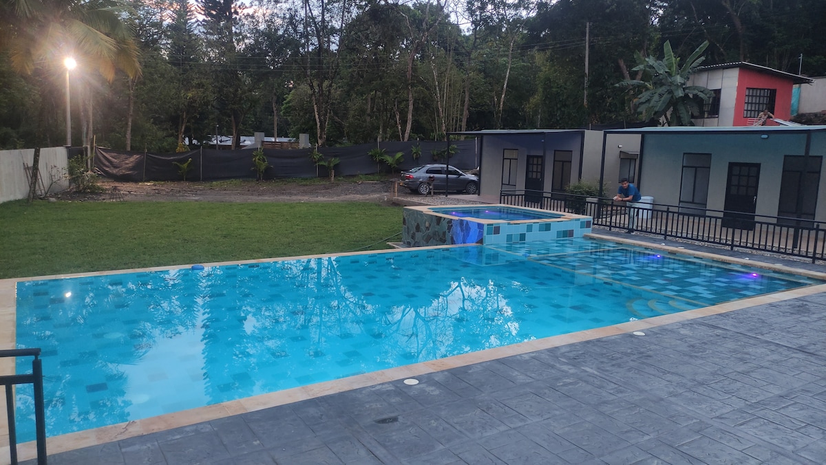 ¡Bienvenido a nuestro paraíso campestre en Villeta, donde la naturaleza y el relax se fusionan en una experiencia inolvidable! Sumérgete en jacuzzis al aire libre, explora senderos entre árboles frutales y disfruta de noches mágicas alrededor de la fogata bajo un cielo estrellado. Además, podrás disfrutar de frutas frescas y pescar tu almuerzo en nuestro lago privado. Tambien contamos con acceso directo y privado a la quebrada. ¡Descubre la serenidad y aventura en nuestro refugio exclusivo!