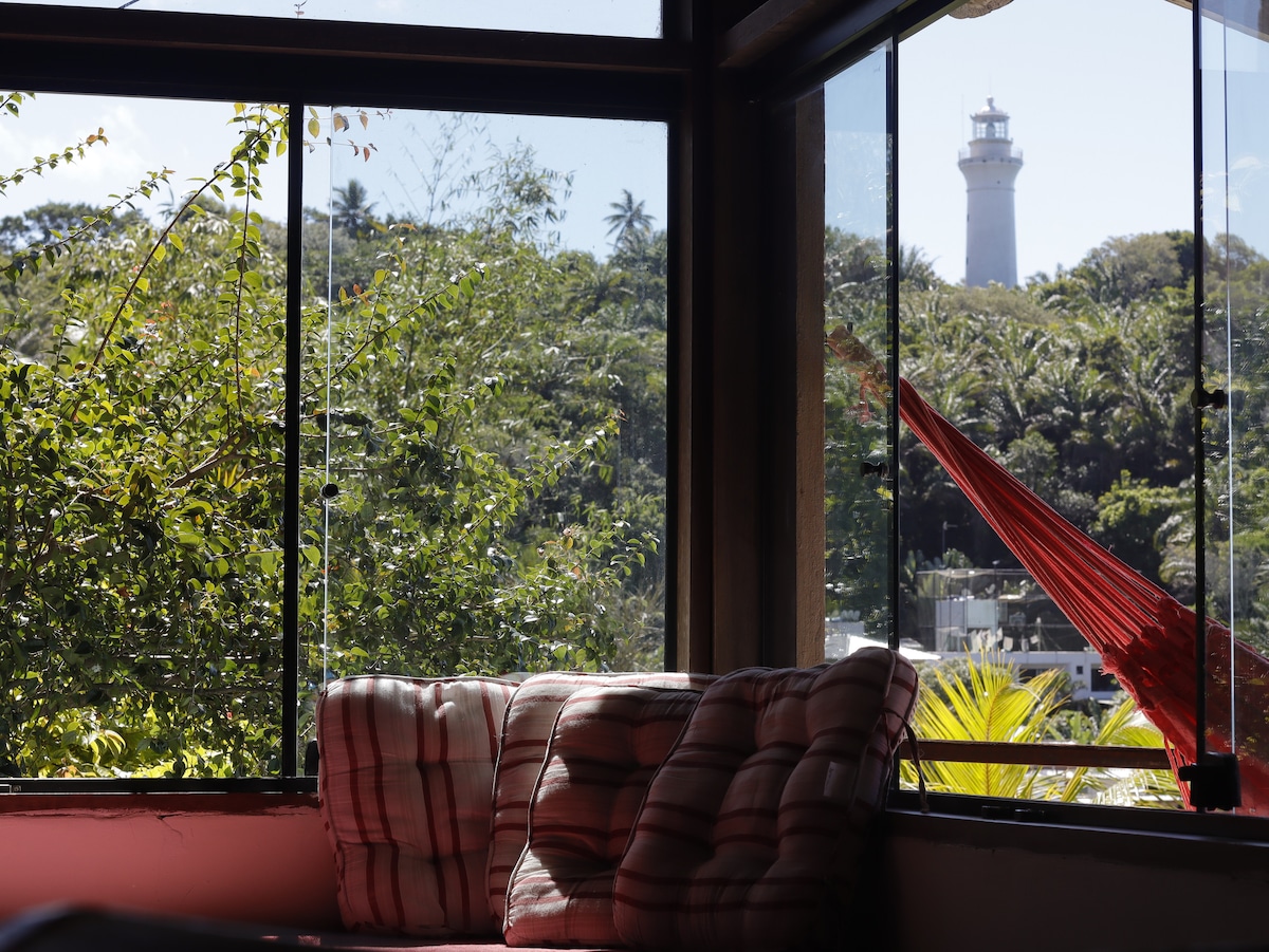 Maré Zen has 2 charming and cozy apartments in the heart of Gamboa, located a 2 minute walk from the Tower Center and the Pier, and a few seconds from the beach. It is just 15 minutes by boat from Morro de São Paulo. Each apartment is decorated with great taste and comfort. Air-conditioned room with queen bed, private bathroom, equipped kitchen, living room with TV and balcony with hammock and garden view. Apartments are the same. Wi-fi, bed linen and towels are available free of charge.