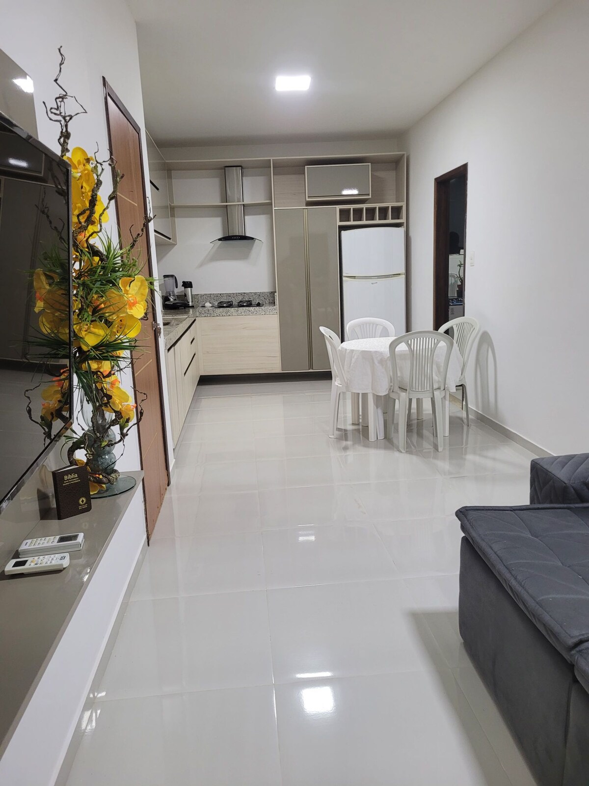 Lindo e confortável apartamento com suíte, sala/cozinha americana, estacionamento privativo para 1 veículo, localizado em condomínio fechado e bem perto da praia (50 metros). A suíte possui: TV 42" e ar condicionado split. Na cozinha: fogão, geladeira, microondas, sanduicheira, liquidificador e cafeteira. Na sala: um sofá cama. O Condomínio: em uso coletivo os hospedes poderão desfrutar de piscina, salão de festas, sistemas de câmeras, wi-fi nas áreas externas e apoio de um caseiro.