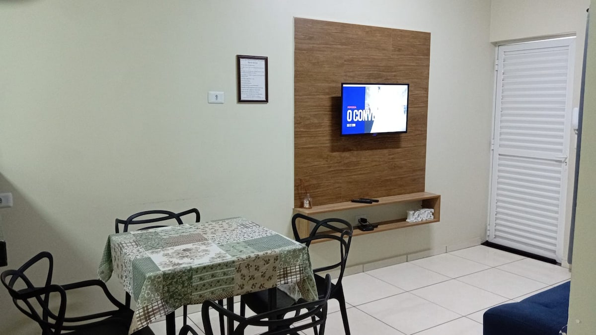 Localizado próximo a Av. principal de Guaíra/Pr próximo á Ponte Airton Senna, Ambiente familiar, limpo e agradável. Apartamento possue 2 quartos sendo 1 com ar condicionado, acomoda até 5 pessoas. Oferece roupas de cama, mesa e banho, travesseiros, Mantas e utensílios básicos de cozinha. A smart Tv possue os aplicativos de streaming, precisando de usuário e senha para navegar, com canais de tv aberto disponível. A internet é de qualidade. O estacionamento é fechado.