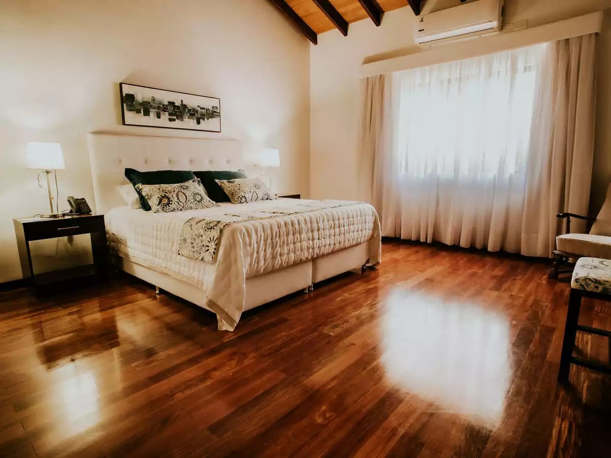 Contamos con amplias habitaciones con todas las comodidades para que tu estadía sea la mejor, amplio lugar de star, wifi,.piscina y quincho con varias parrillas, estacionamiento para 20 vehículos