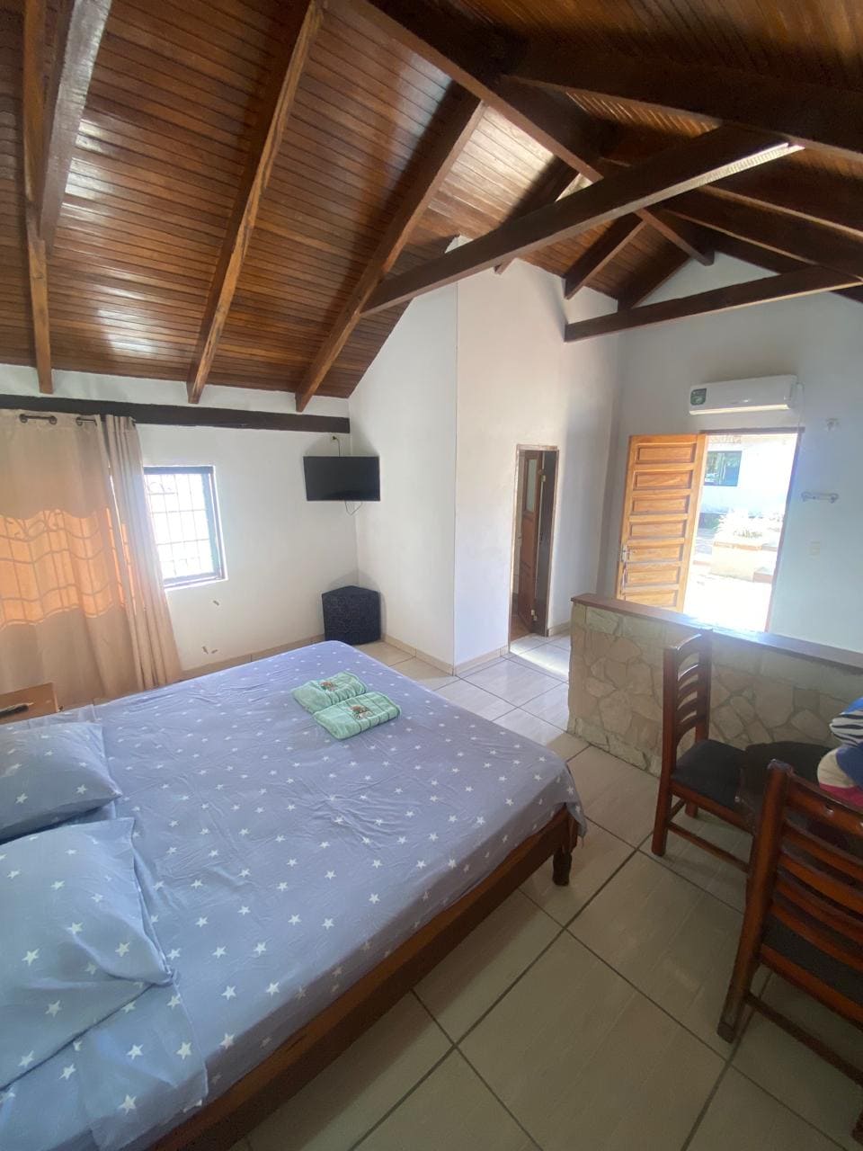 Im Herzen von Villarrica bieten wir ein gepflegtes Zimmer mit viel Komfort an. Das Zimmer besitzt: Klimaanlage Deckenventilator Tisch mit 4 Stühlen USB-Ladestation großzügiger Kleiderschrank, bei Bedarf ein Babybett Wir bieten: Innenküche Waschmaschine / Trockner Bad / europäischem Standard Zum Entspannen, gemütliche sonnige und beschattete Plätze Zur Abkühlung sorgt der Pool Ein Außengrill für Grillfans Direkte Umgebung: Obstmarkt Innenstadt Laguna Ycua Pyta Busbahnhof