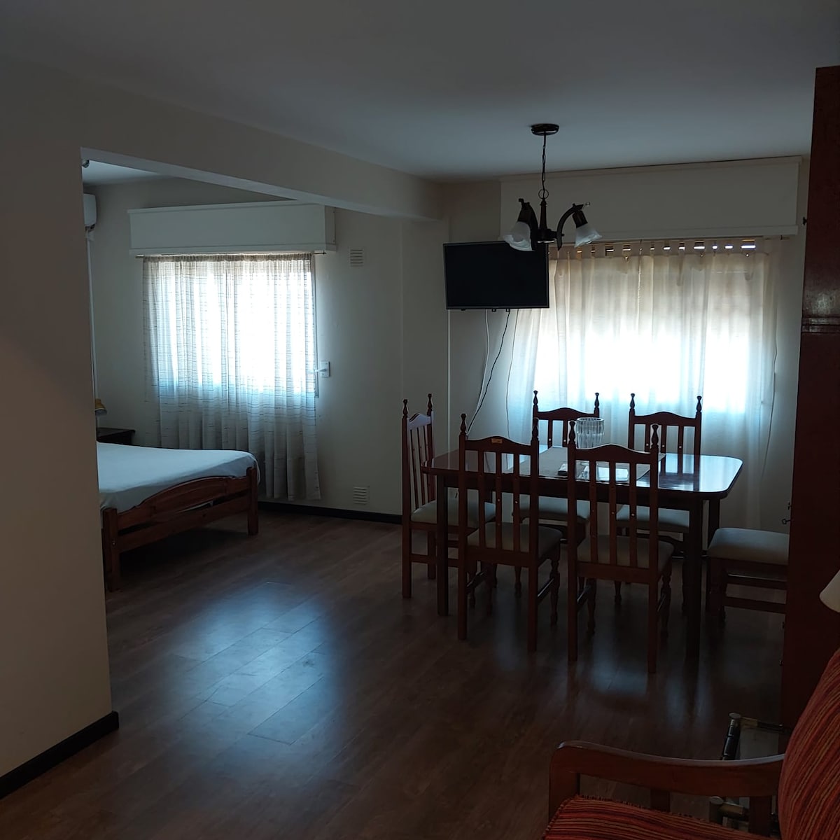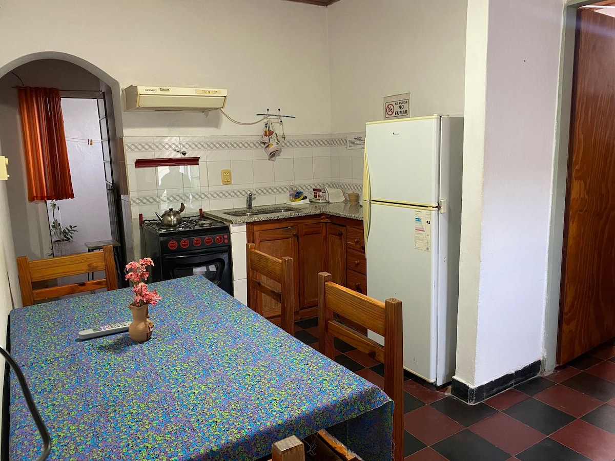 Dos ambientes luminoso para 2 personas. Super céntrico, a una cuadra de la calle principal. Ubicación ideal para moverte caminando (tramites, compras, etc.) Sin cochera. Se puede estacionar en la calle sin problema. Dispone de vajilla y elementos básicos de cocina.Heladera, pava electrica, microondas Tv Smart. Wifi. Ropa blanca incluida (Sabanas y toallas) NO se aceptan mascotas.