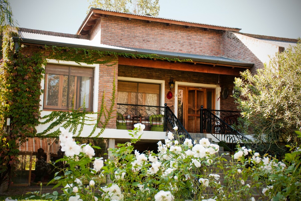 Este alojamiento tiene jacuzzi privado al aire libre. La idea es poder disfrutar del espacio, el verde, los animales. Por el predio pasa un arroyo (el cura) que se comunica con el rio gualeguaychu en el margen tenemos un muelle y se puede pescar (doradiĺos, sabalos y alguna boga) muy ricos por cierto. También existe la posibilidad de recorrerlo en kayak o bote a remo. Estamos a solo 30 cuadras del corsodromo, ideal para pasar el dia en la pileta y el campo y la noche en el centro.