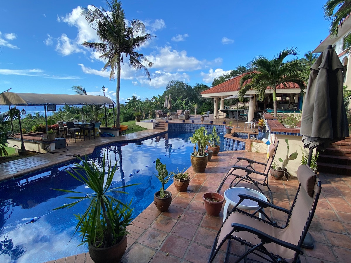 This listing is for Room 1 (King bed). This is the largest of the two available rooms. It’s really a junior suite, as it features a sitting area for enjoying the ocean/pool view as well as a dedicated work space and en suite bath with picture-window. (See our separate listing for a smaller room.) The Manor is a luxuriously-appointed, LGBTQ+friendly mansion house with stunning ocean views, a huge private swimming pool, rooftop sky-terrace with hot tub, and stylish indoor spaces. Adults only.