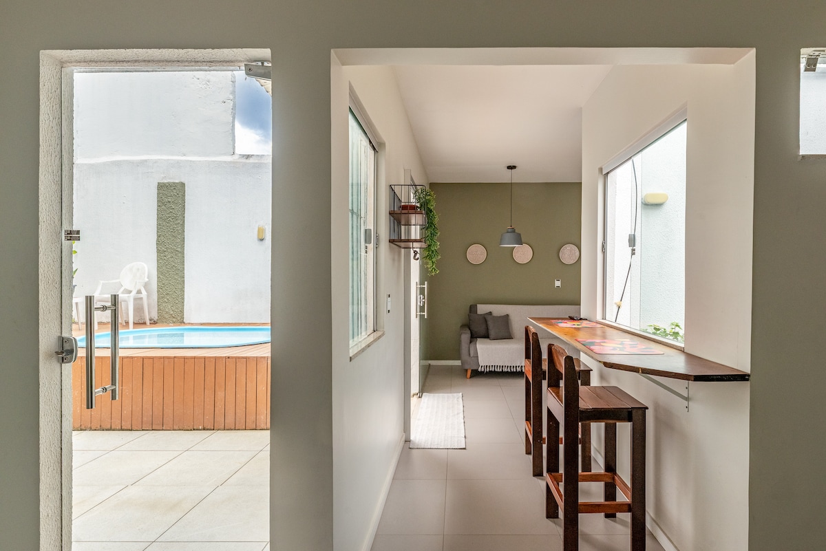 A haven of comfort and culture in the heart of Belém Fully air-conditioned, charming, and with original décor inspired by the Amazon, Casa Felicidade is the ideal place for those seeking tranquility, style, and an authentic local experience. 🏡 The House: • 2 comfortable bedrooms: double + single • 2 full bathrooms • Fully equipped kitchen with modern appliances • Spacious, bright, and air-conditioned living room with 58" TV • Mezzanine with sofa bed, 42" TV, and hammock for reading or relaxing.