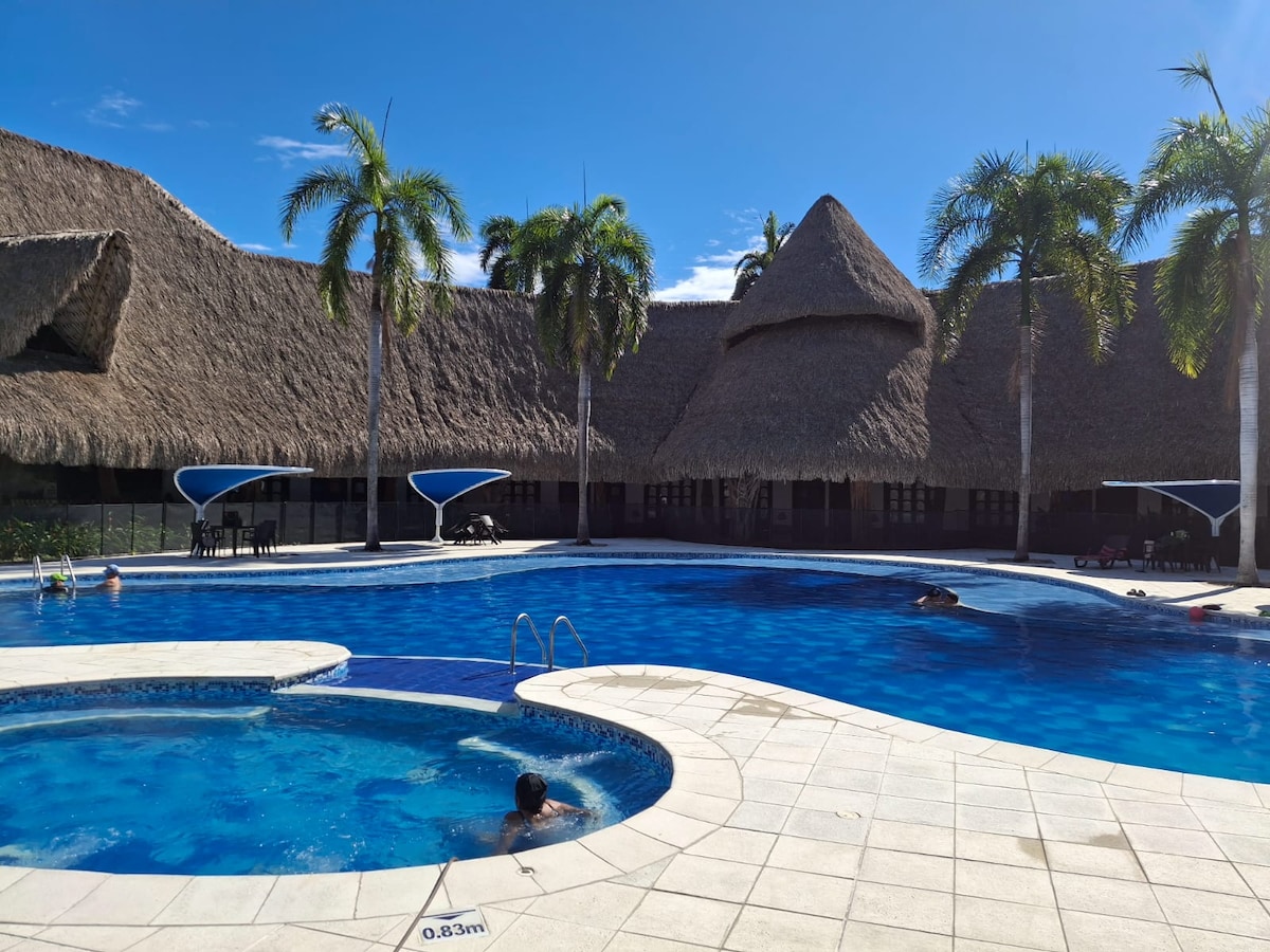 Lleva a toda la familia a este fantástico lugar para descansar. casa en conjunto cerrado con vigilancia, piscina privada con jacuzzi, parqueadero y aire acondicionados. la casa cuenta con: - 4 alcobas con aire acondicionado. - 3 baños completos. - 1 baño sin ducha. - Sala comedor con aire acondicionado. - Piscina - Jacuzzi. - Asador de carbón. ventiladores adicionales, menaje de cocina y colchones inflables en caso de que vayan más personas.