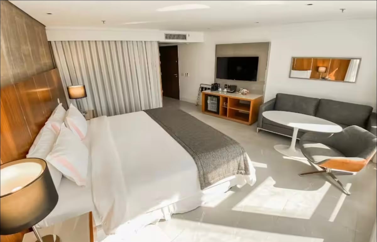 Hospede-se no Hotel Nacional, em uma suíte luxuosa com cama king size e espaço para até 4 pessoas. Desfrute de uma vista incrível para o mar de São Conrado e relaxe com toda a comodidade e estilo que você merece. Perfeito para férias em família ou momentos especiais. Reserve agora!
