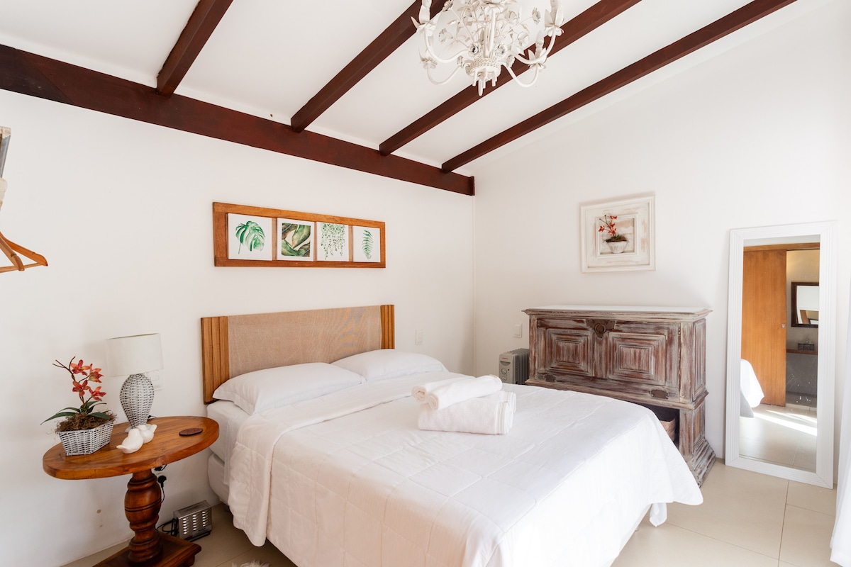Stay at home in this luxurious and magical garden. We have a 13 meter pool, a patio with barbecue, terrace with day beds, fruit trees and an orchard with tomato and arugula to name a few. The guest house has a fully equipped kitchen, washing machine, 120mg wifi and ac. Two bikes are included and also jungle sounds!