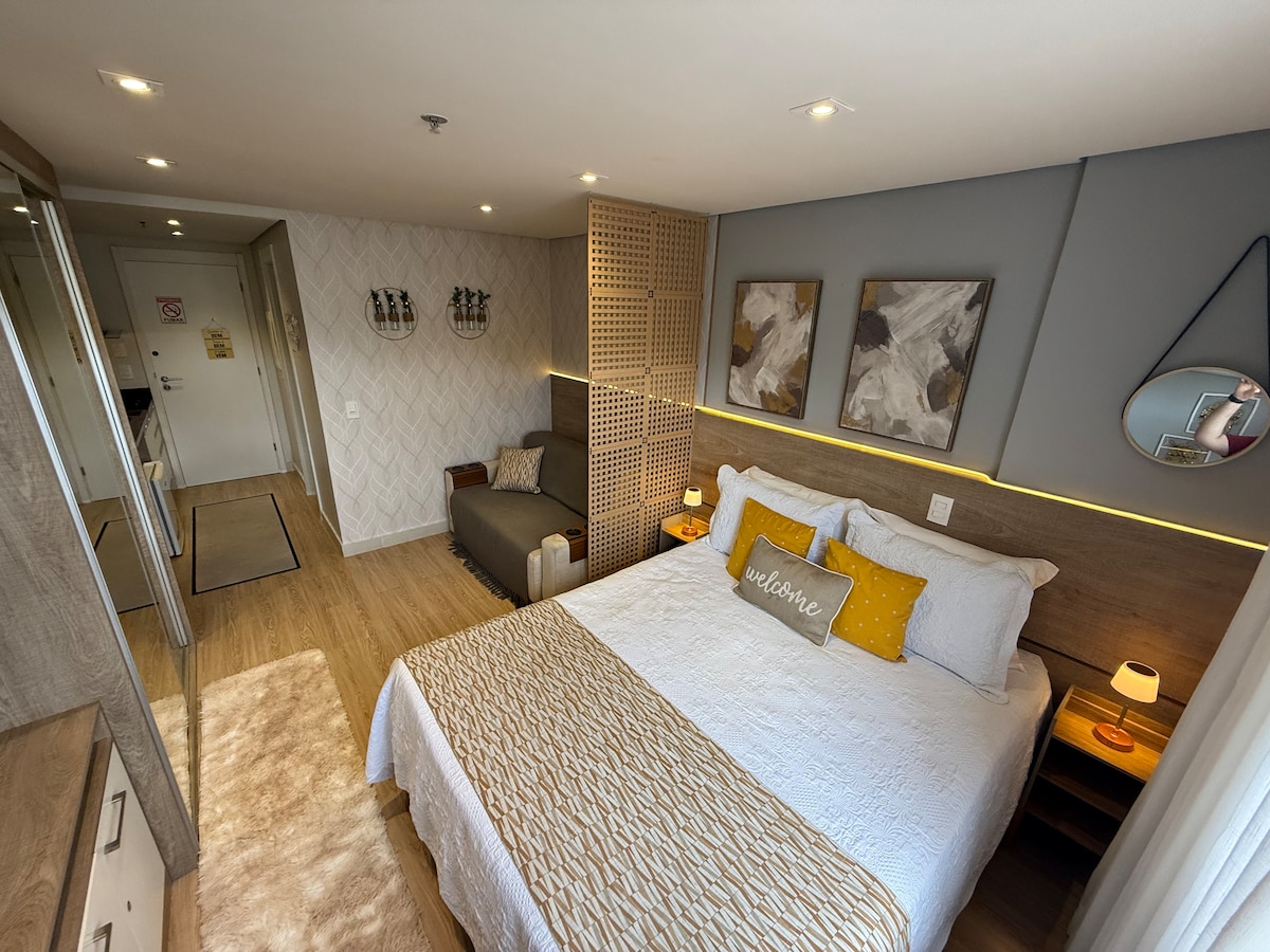 Take a look on this sophisticated aparthotel, designed to offer even more comfort, style and the unique experience of living like a authentic 'Carioca' (those who was born in Rio). Enjoy all the facilities around staying close to the best restaurants, bars, shoppings and local commerce and the amazing green view from the balcony. 24/7 reception desk and daily cleaning. Don't forget to see my reputation (host since 2012 and +450 comments).