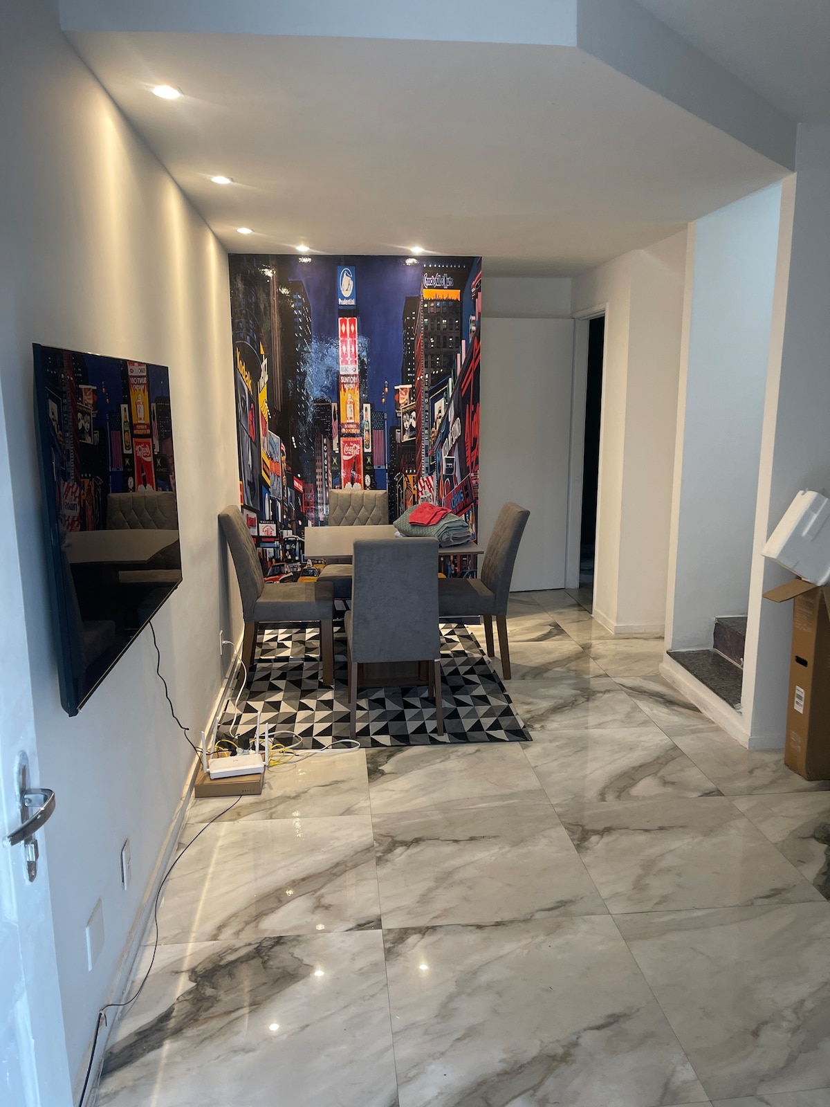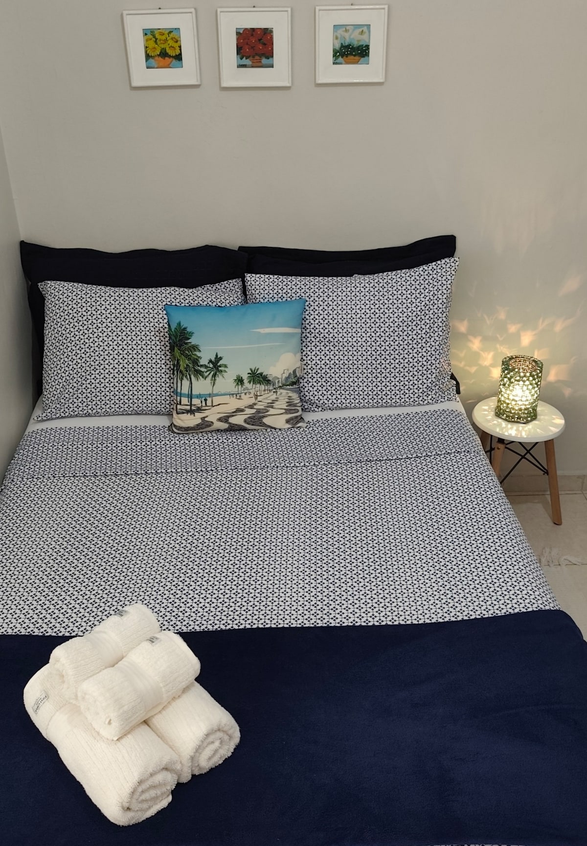 Feel the comfort and sophistication of this modern apartment in Barra Olímpica. With a balcony offering spectacular views of the Barra skyline and mountains, the space is perfect for relaxation. The master suite features premium bedding, and the living room converts into a bedroom. The open-concept kitchen with an exotic marble island adds to the elegant design. Spacious, airconditioned, and powered with highspeed internet, 2 full baths, beach essentials, 2 bikes, and more for your convenience.