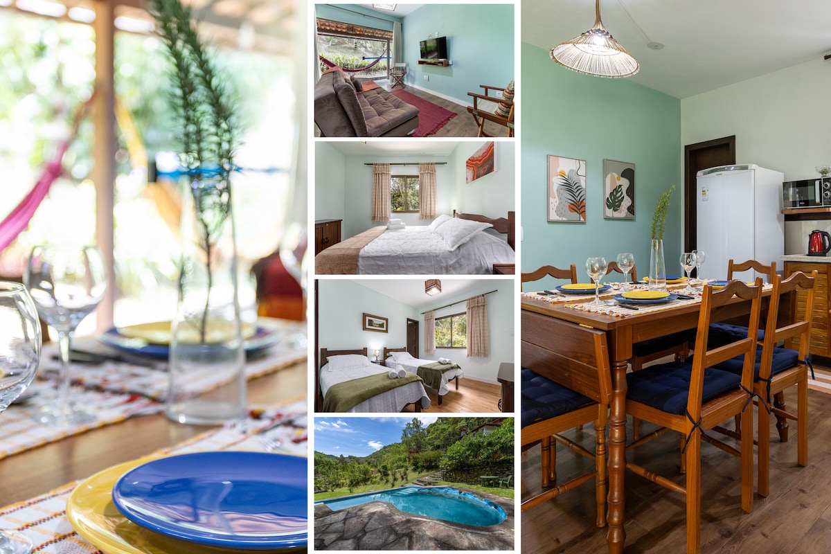 A Casa das Janelas Azuis é de estilo colonial reformada para oferecer todo o conforto a seus hóspedes. Está localizada a um passo da praia de Camboinhas, e a um outro passo da Praia do Sossego (selo de Bandeira Azul). Duas das melhores praias da Região Oceânica de Niterói. A casa possui suítes bem planejadas, algumas com banheiras, uma piscina, maravilhosa, área gourmet externa, e estacionamento. Todos os quartos passados por um aparelho de ozônio. Tudo isso à um passo da praia.
