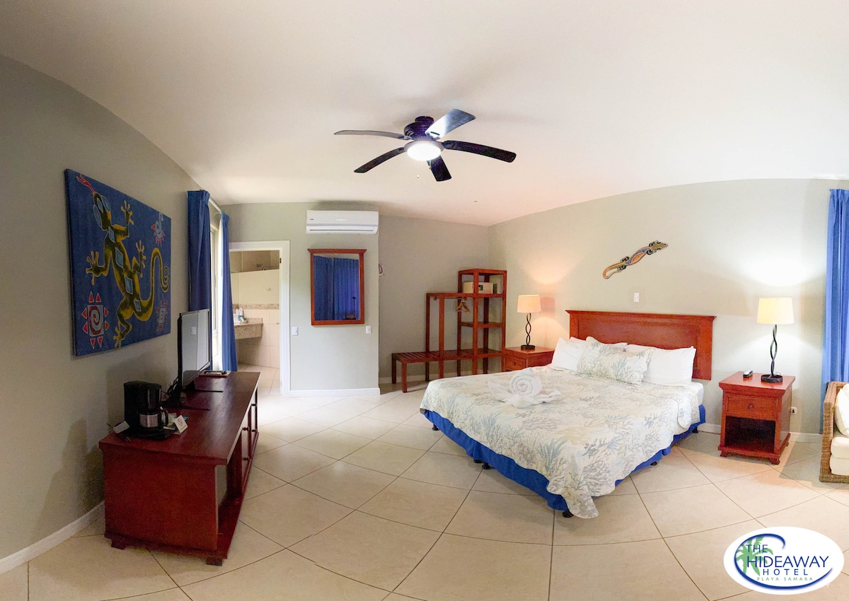 Relax in a boho-colonial hideaway in our lush 4-room hotel. This room offers a queen bed, A/C, kitchenette, outdoor porch, secure parking, fast Wi-Fi, hot water, and spa-like toiletries. Enjoy poolside lounging, complimentary snacks, and à la carte breakfast. Peaceful, cozy, and just minutes from Tamarindo’s beach, shops, restaurants and cafés. We will gladly help you coordinate special requests, transportation and activities.