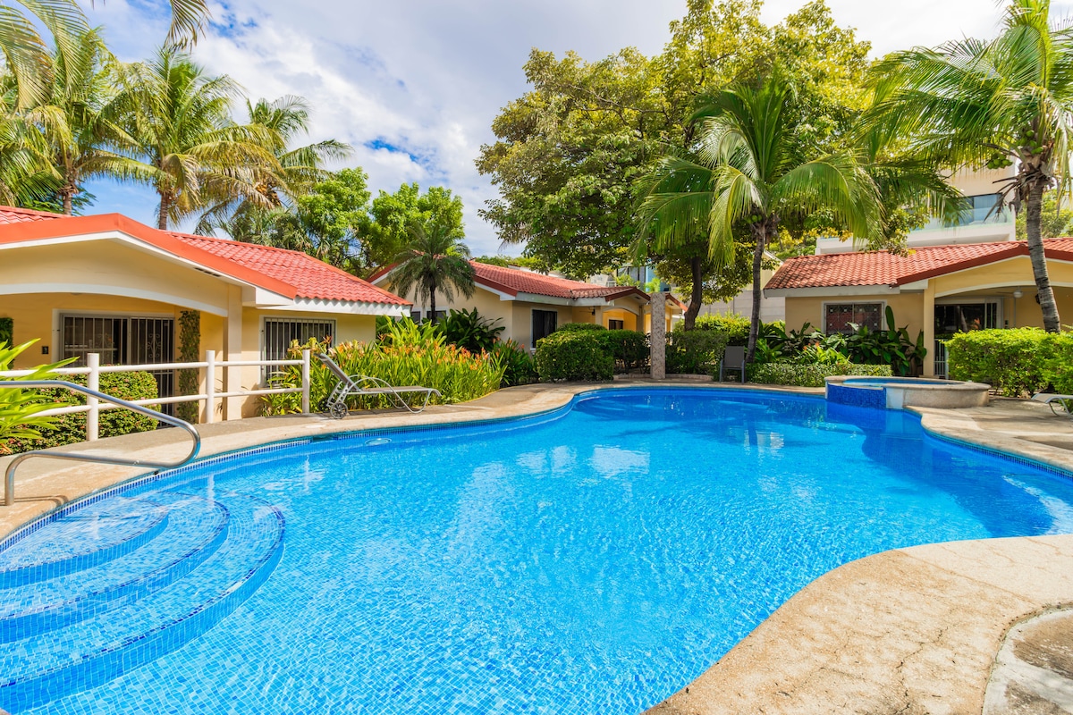 Here Comes the Sun, Little Darling! *Gated Condo Complex with 24/7 security *Cozy, air-conditioned, sleeps 6, perfect for families or couples *Only 200 meters from 2 stunning beaches, Playa Penca and Playa Potrero *Steps away a salt water pool *Walking distance to many restaurants *King Bed in the Master, Bunk bed and Queen bed in 2nd bedroom, trundle bed sofa in living room, Pack & Play *Stainless steel appliances, TV with Netflix, beach equipment, WIFI *Pets Welcome for an additional fee