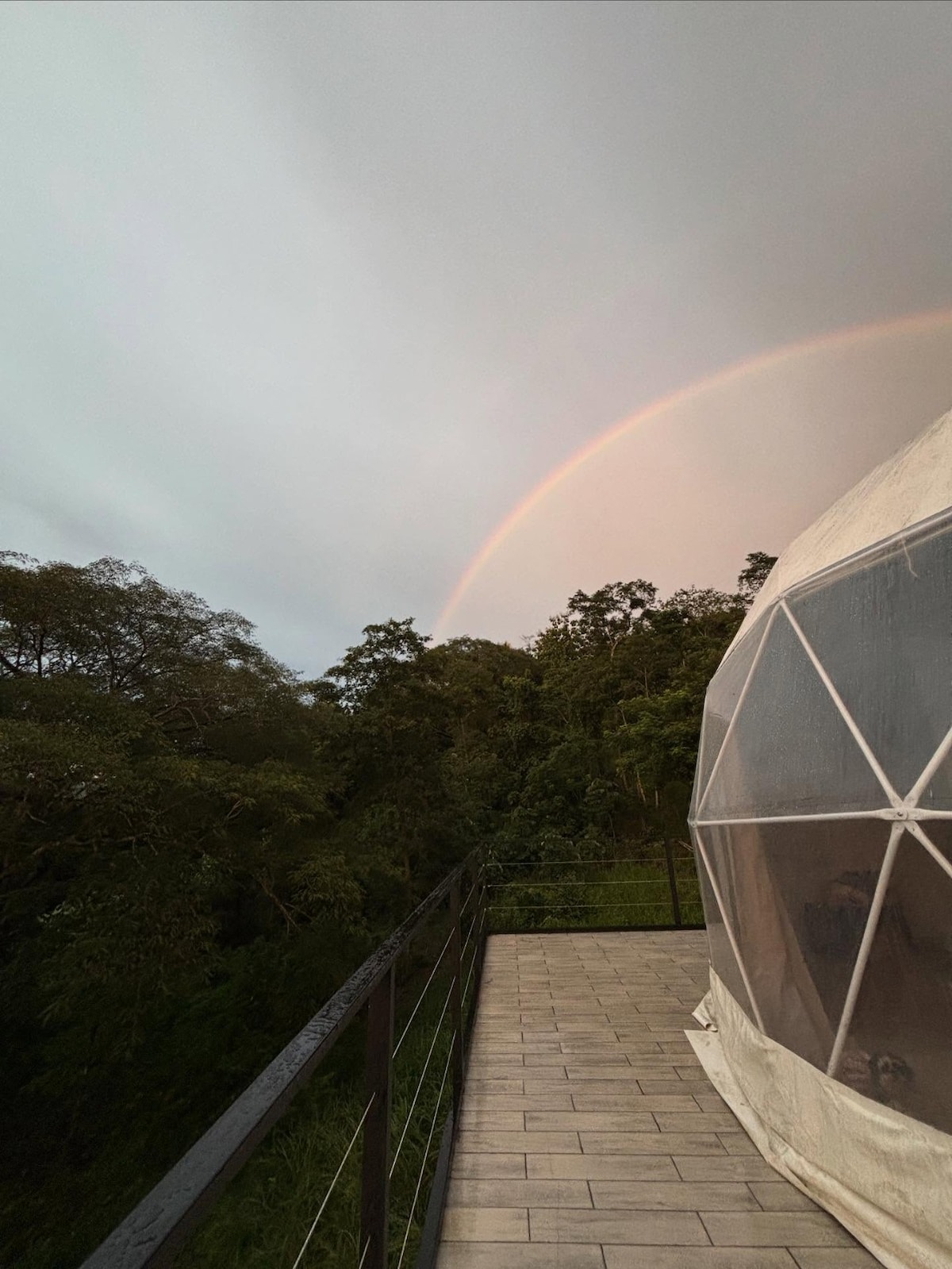 This unique retreat in Costa Rica is a breathtaking blend of modern luxury and natural immersion. The brand-new dome is designed with a sleek, geometric frame, featuring expansive glass windows that curve seamlessly with the structure. The windows provide unparalleled views of the retreat grounds, also allowing you to stargaze at night from the comfort of your bed.