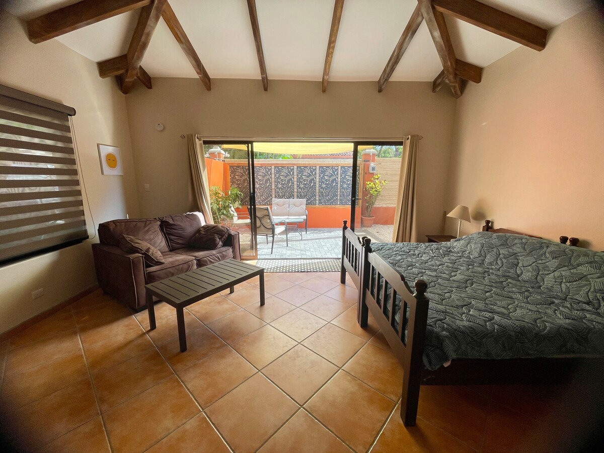 Peaceful tropical studio just a 7-minute walk to Playa Potrero’s beach, cafés and sunsets. Casita Libellula is a top-rated 5.0★ stay in Surfside with strong Wi-Fi, A/C and easy self check-in. Flexible king bed (or 2 singles on request), private patio, workspace & free parking. Beach kit ready—chairs, towels, cooler + snorkel gear. Pet-friendly and ideal for day trips to Flamingo, Tamarindo and nearby beaches—your sunny, laid-back pura vida stay. Perfect for couples, remote work & beach days.