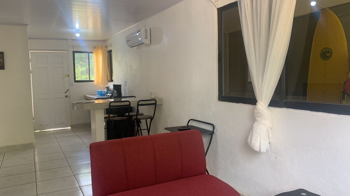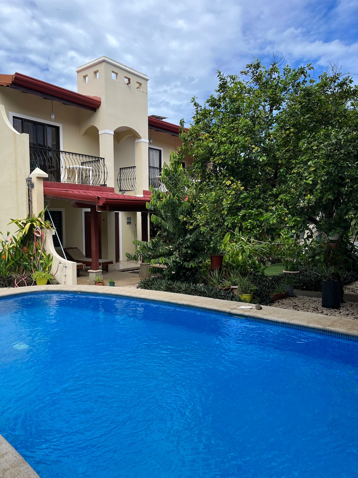 Lovely house just 2 minutes from Pelada Beach and 8 minutes from Guiones waves. Enjoy a tropical garden with palm trees, flowers, birds, squirrels, sometimes monkeys. you share the pool Steps away: Peperoni pizzeria, an Italian gelato shop, and the famous La Luna restaurant with stunning views—all within walking distance. On-site, enjoy homemade cuisine: fresh fish of the day and dishes made with love. Join yoga, martial arts, in our shala and dojo A private and peaceful place