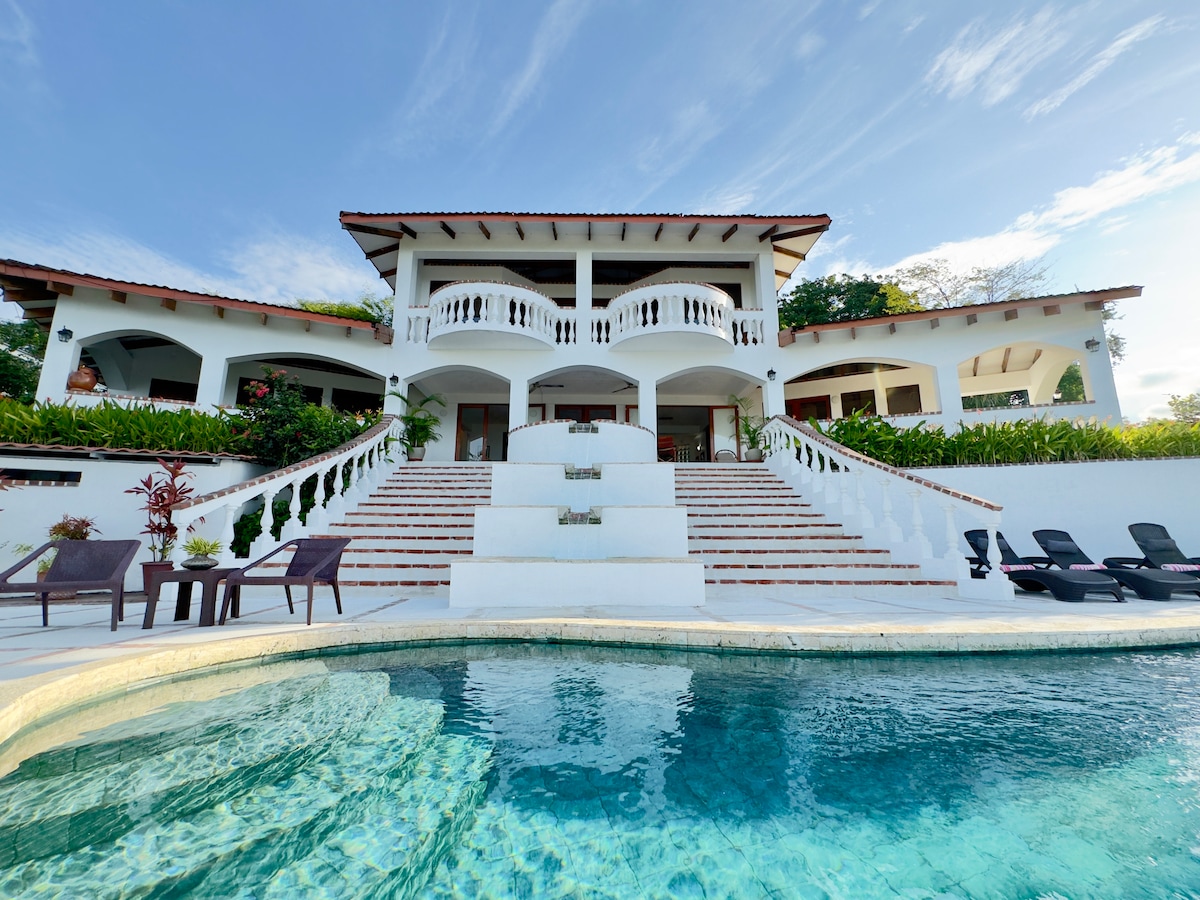 Located in the hills above Playa Hermosa, this unique Villa offers the most spectacular views of the bay and is surrounded by tropical forest. Centrally located just 25 minutes from Liberia Airport, you have a 180-degree view of the ocean from every room in the Villa, even from its private pool/jacuzzi. Every morning, you wake up with an unobstructed view of the ocean without even leaving the bed.