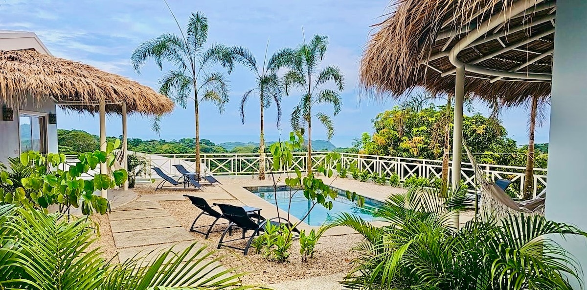 Nouvellement rénovée. Séjournez dans une superbe villa avec piscine à débordement privée, située dans une communauté sécurisée, proche des plus belles plages du Costa Rica. Entièrement rénovée en 2025, elle offre confort moderne et vue imprenable. • 2 chambres climatisées avec salles de bain privées • Espace ouvert avec cuisine équipée et salon cosy • Salle à manger extérieure pour admirer des couchers de soleil spectaculaires • Wi-Fi, alarme et parking clôturé
