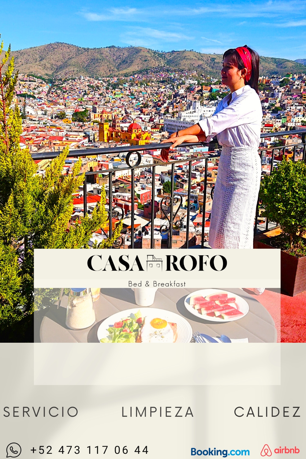 Casa Rofo te ofrece un alojamiento bed & breakfast donde podrás disfrutar aparte de el alojamiento desayunos gourmet tipicos de la region echos por el chef Omar Rodiguez y apreciar la vista privilegiada de la terraza qué tiene Casa Rofo, gracias a su gran ubicación en el centro histórico de Guanajuto.