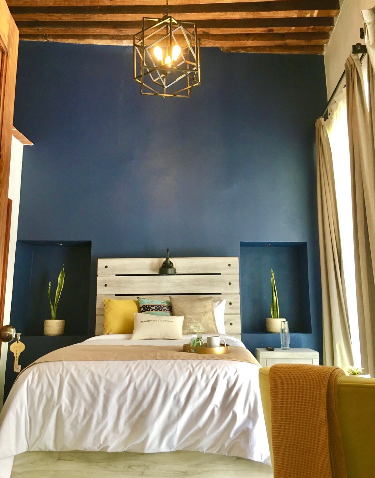 Espacio con estilo; su comodidad, limpieza y diseño lo caracterizan. Se ubica en el corazón del centro histórico, en la calle del Campanero, de fácil acceso y sin subir por callejones. Encontrarás una bonita habitación en PLANTA BAJA con entrada independiente, baño privado y TV; y un entorno en donde disfrutar de un desayuno, tomar un café, visitar nuestras boutiques y más. En 1 minuto caminando estarás en el del Teatro Juárez y el jardín principal.