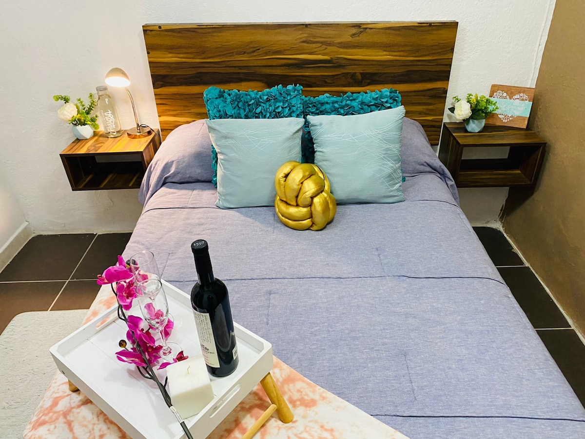 Ven al Patio Piccolo a conocer una acogedora suite completa ubicada en un barrio tradicional de Guanajuato. Cercana a los principales atractivos de la ciudad a donde se puede llegar caminando, Patio Piccolo te brinda un espacio interno de estacionamiento privado para un carro. Se ubica a pie de calle y no hay que subir escalones ni callejones. A 15 min caminando del centro histórico de Guanajuato. Espacio para dos personas con un sofá para persona adicional con costo extra de 300 por noche.