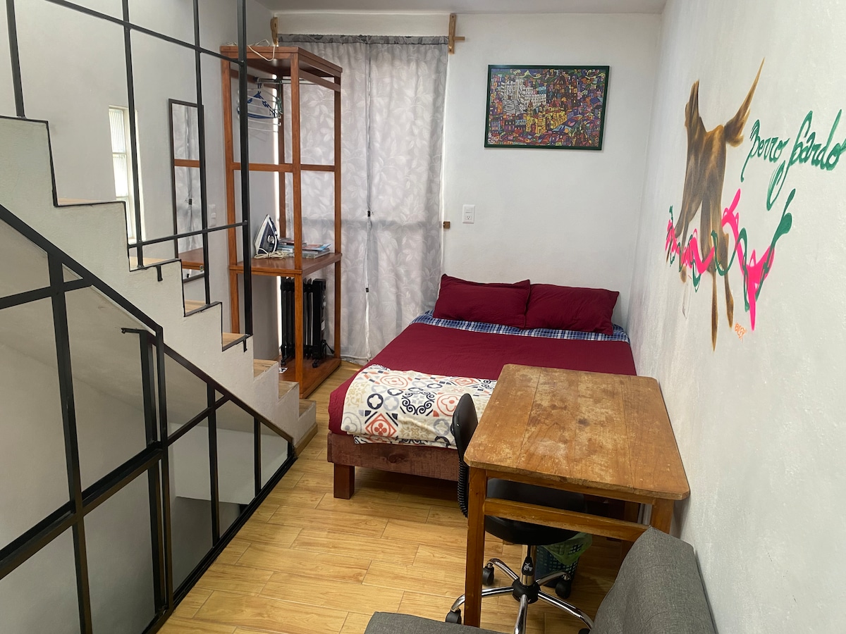 Disfruta de la sencillez de este alojamiento tranquilo y céntrico. El acceso es independiente, mediante un patio, el cual se encuentra en remodelación, sin embargo el alojamiento cuenta con los servicios para una estancia confortable. Se trata de un área con dos espacios con cama matrimonial cada uno y un baño completo exclusivo para el espacio, el cual cuenta con agua caliente, toallas, shampoo y jabón . La ubicación es muy buena ya que se encuentra a 4 minutos de la plazuela del baratillo.