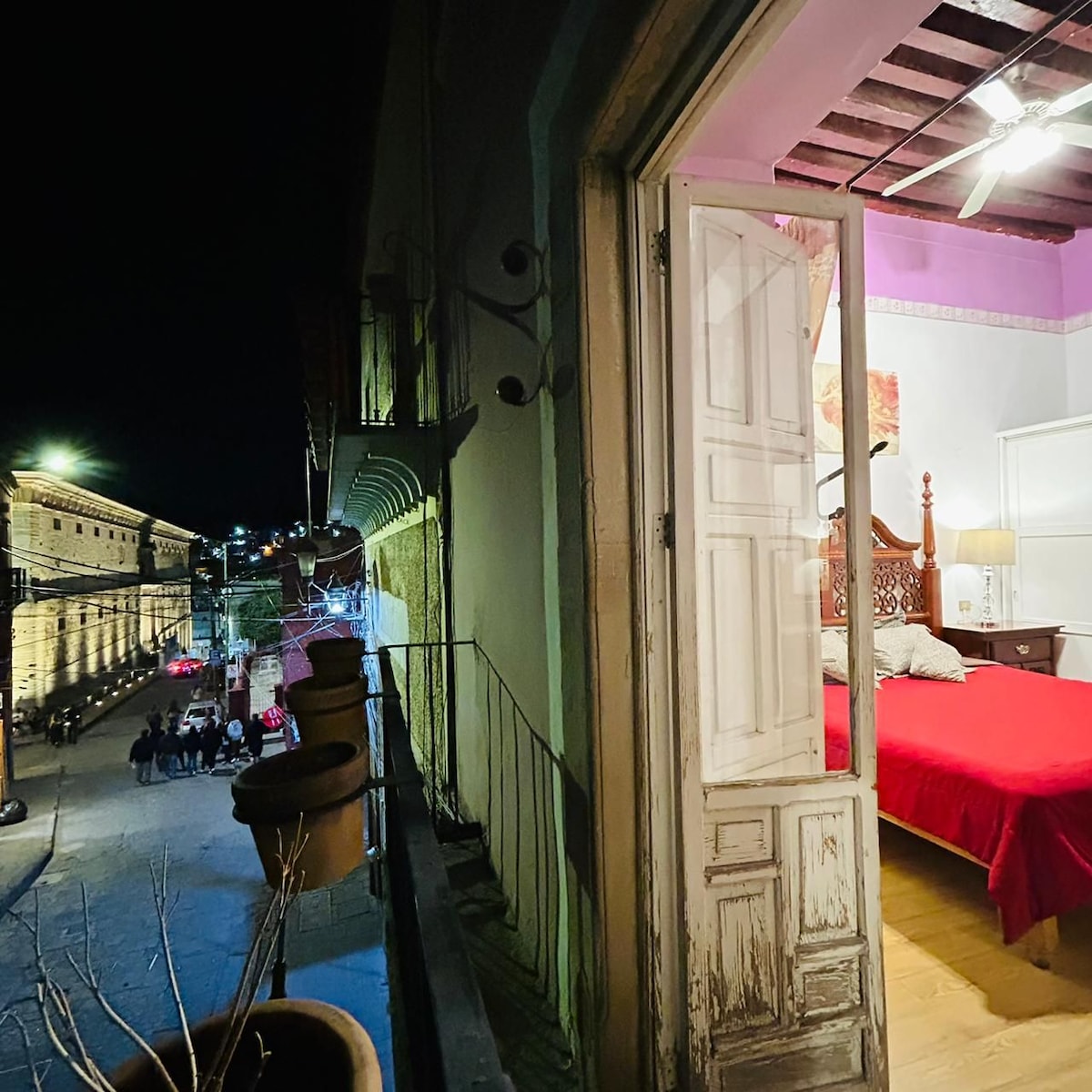 "Los Balcones" is a street-style Mexican apartment with 4 bedrooms, 2 full bathrooms, living room, dining room and equipped kitchen (microwave, refrigerator, and kitchen utensils). It is located in the center of Guanajuato, just 5 minutes from the Alhóndiga de Granaditas and 10 minutes from the Callejón del Beso and the Juárez theater and we are at street level, you can get with your vehicle or taxi to leave your luggage, it is Av Guanajuato's main is the continuation of Juárez Av.