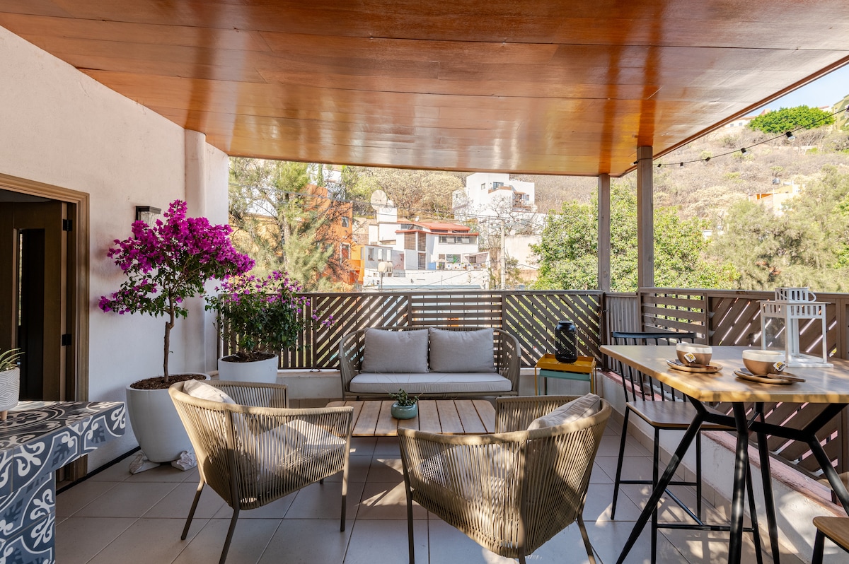 Crea recuerdos inolvidables en este penthouse confortable y muy familiar.Lo que hace único a este alojamiento es su vista panorámica de toda la bella ciudad que se encuentra en el corazón de Guanajuato