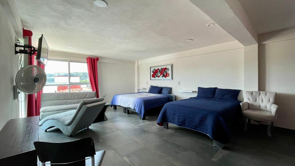 Ubicación Céntrica. Cuenta con una cama king-size, un sofá-cama y vista a la ciudad. Wifi y agua caliente las 24 hrs. Baño privado en la habitación. Estacionamiento con circuito cerrado dentro de la propiedad.