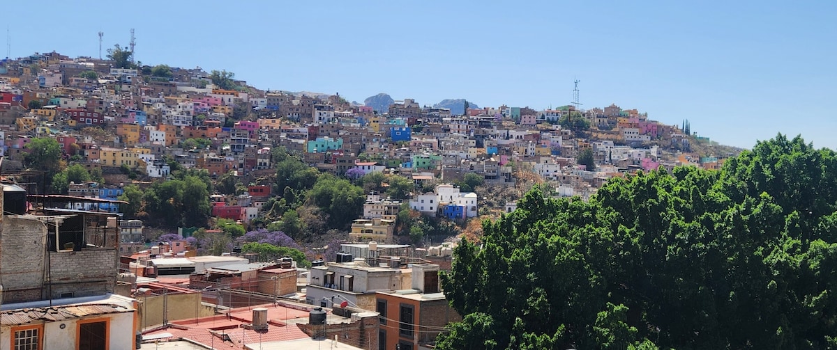 Disfruta de Guanajuato hospedándote en nuestro Loft con estacionamiento propio y privado, donde podrás estar a minutos de todos los lugares de atracción, sin padecer la estridencia que caracteriza a la ciudad. Enjoy Guanajuato staying in our house with its own parking lot, where you can be minutes from all the important touristic places, without suffering the stridency that characterizes the city.