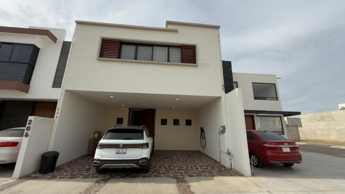 Beautiful 3 Bedroom house totally equipment feel as home, has wiffi, tv cable system, phone, Hosting families or bussiness trip . Located at El Refugio in a private with security 24 hrs, is 15 minutes from downtown, 10 min from Juriquilla and Antea, 5 minutes from Zibatá Anahuac , 5 min from Paseo Queretaro Shopping center and 10 min from principal avenue Bernardo Quintana.