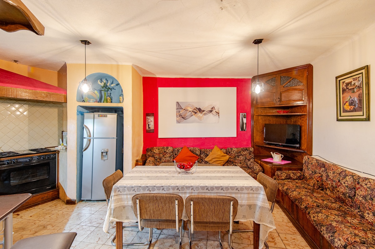 Este alojamiento fue diseñado desde su construcción para ser una casa de huéspedes, el entorno es tranquilo y natural. Se tienen visitas increíbles desde las habitaciones y la terraza. El centro está tan solo caminando a 6-8 minutos del alojamiento, contamos con estacionamiento privado con espacio hasta para 3 vehículos grandes. La casa está completamente nueva y las instalaciones funcionan a la perfección, sin duda asegurarás una estancia maravillosa en este alojamiento.