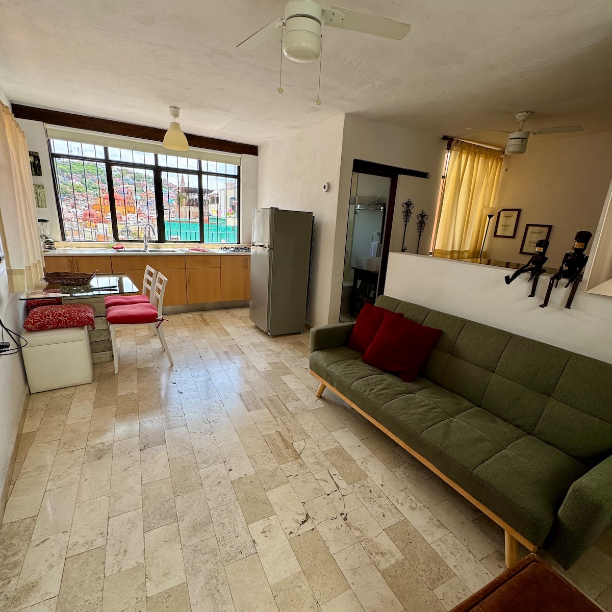 This studio with a fully equipped kitchen has a great view and a private terrace, we provide everything we think you'll need during your stay and there is a washer and a dryer in the property. We're located in the historic core of downtown Guanajuato, less than 5 minutes walking from Teatro Juárez, Jardín de la unión, Plaza del Baratillo and many attractions, museums, restaurants, bars and stores. We have high speed WiFi connection